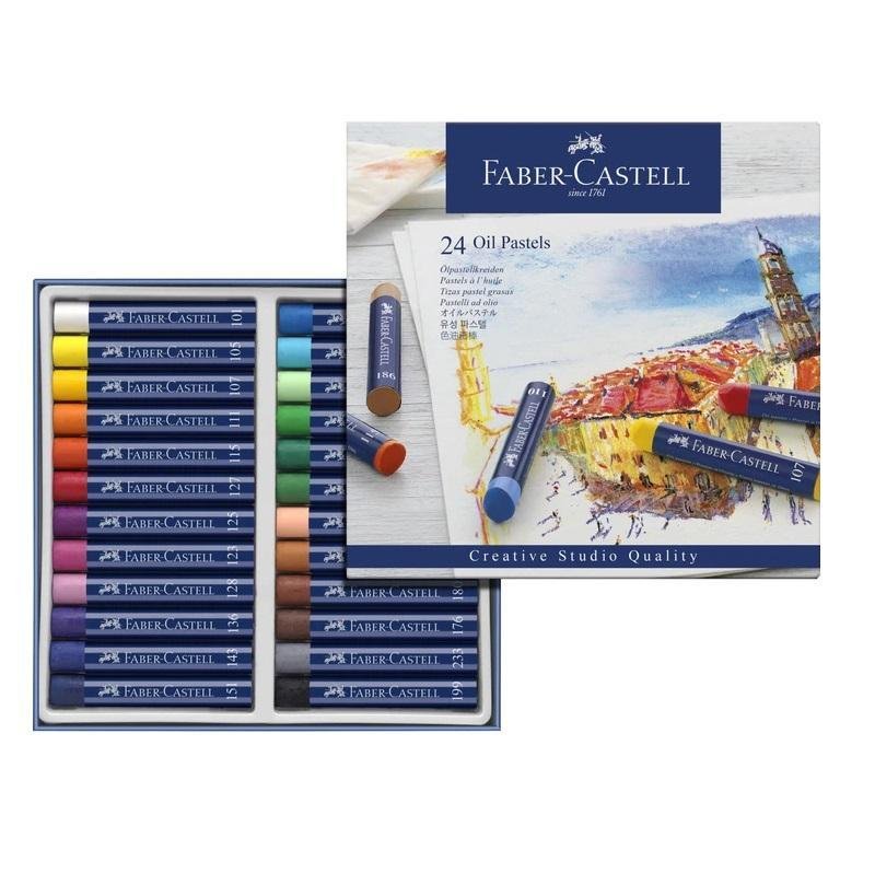 Aliejinės kokybiškos pastelės Faber Castell suteikia meniniams projektams plačią spalvų paletę.