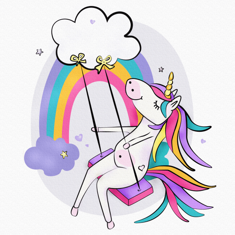 Drobė 20×20 ant kartono su piešiniu – Besisupantis vienaragis