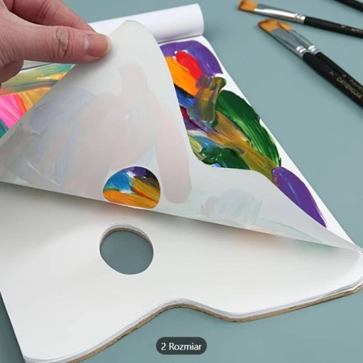 Paletė sudaryta iš lengvai nuplėšiamų baltų sintetinių lapų. Popierius neįgeriantis dažo ir glotnus, todėl lengvai sumaišysit reikiamus dažus.