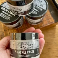 Distress Crackle Translucent pasta yra skirta norint išgauti reljefiniuose darbuose skilinėjimo efektą. Pasta skaidri ir išdžiūvusi blizgaus paviršiaus.